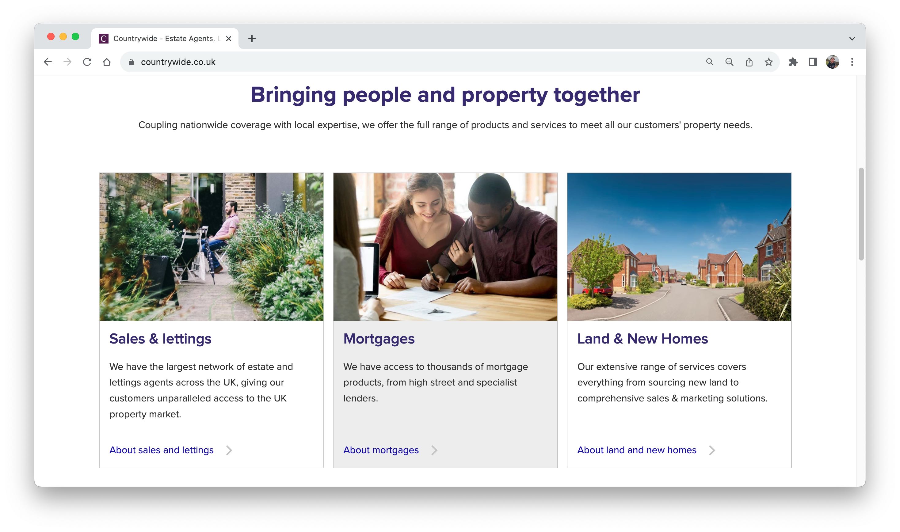 - Countrywide corporate website and four sub-sites for key business areas (mortgages, insurance, surveying and conveyancing) – www.countrywide.co.uk