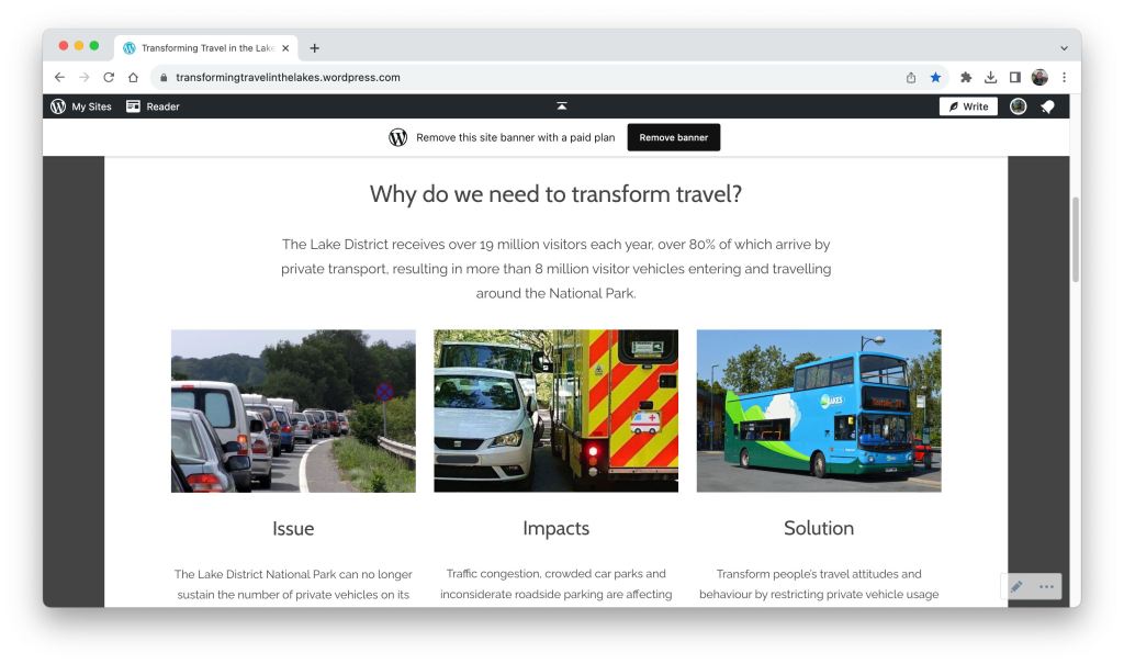 The website presents the case for transforming travel in the Lake District National Park, and is aimed at key stakeholder groups – visitors, local residents and businesses, transport providers and local authorities.
